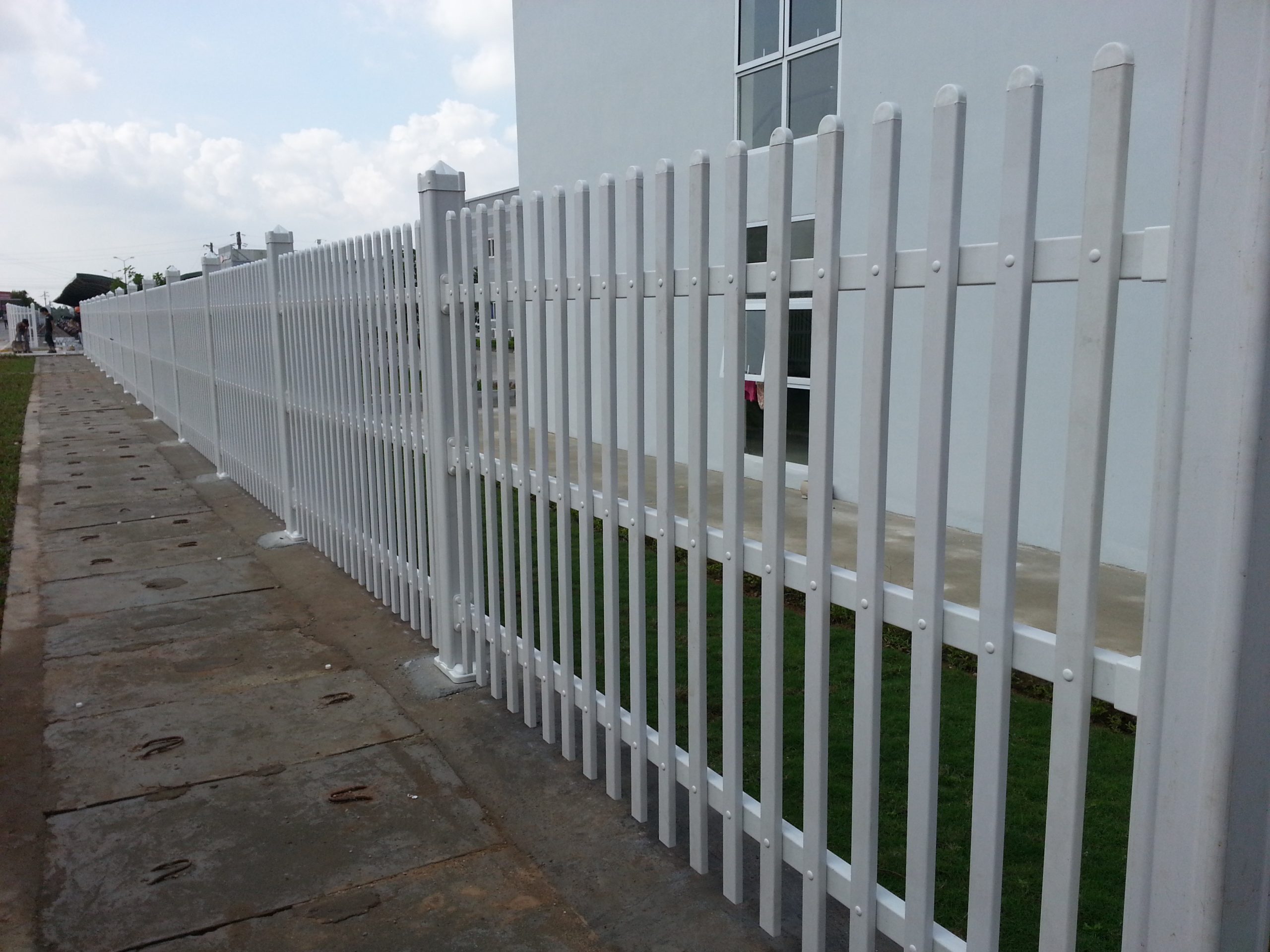 - Cột hàng rào: Nhựa UPVC 121x121x2 mm, lõi thép 100x100x1.8 mm hàn với bản mã 220x100x6mm