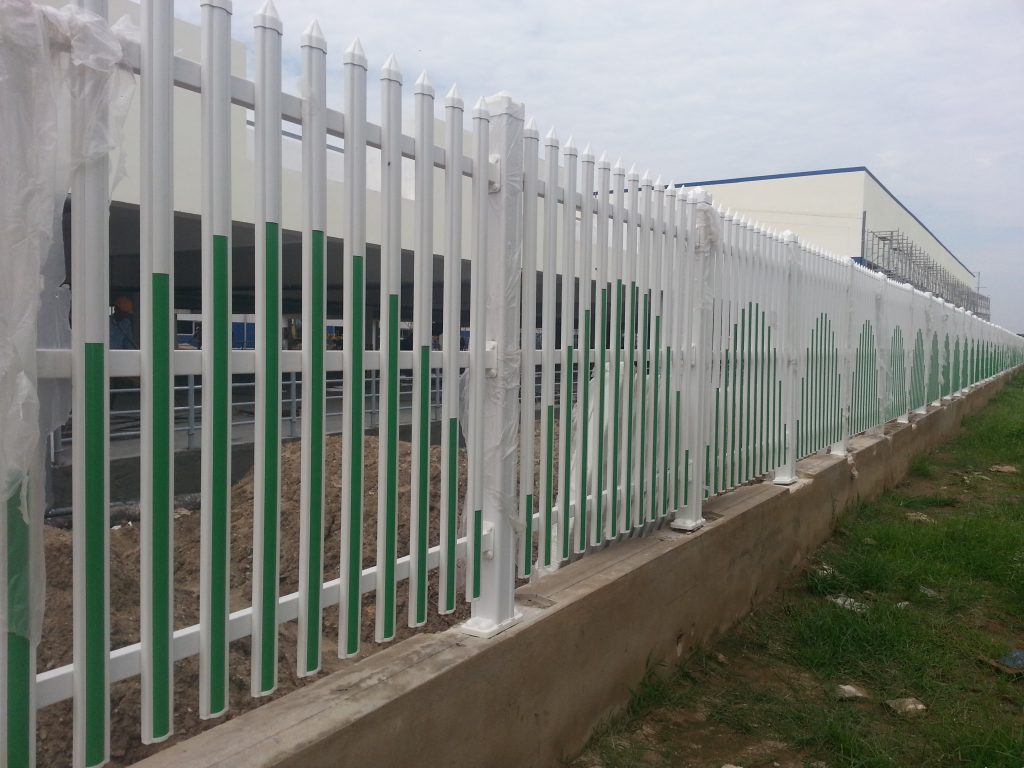 - Cột hàng rào: Nhựa UPVC 121x121x2 mm, lõi thép 100x100x1.8 mm hàn với bản mã 220x100x6mm